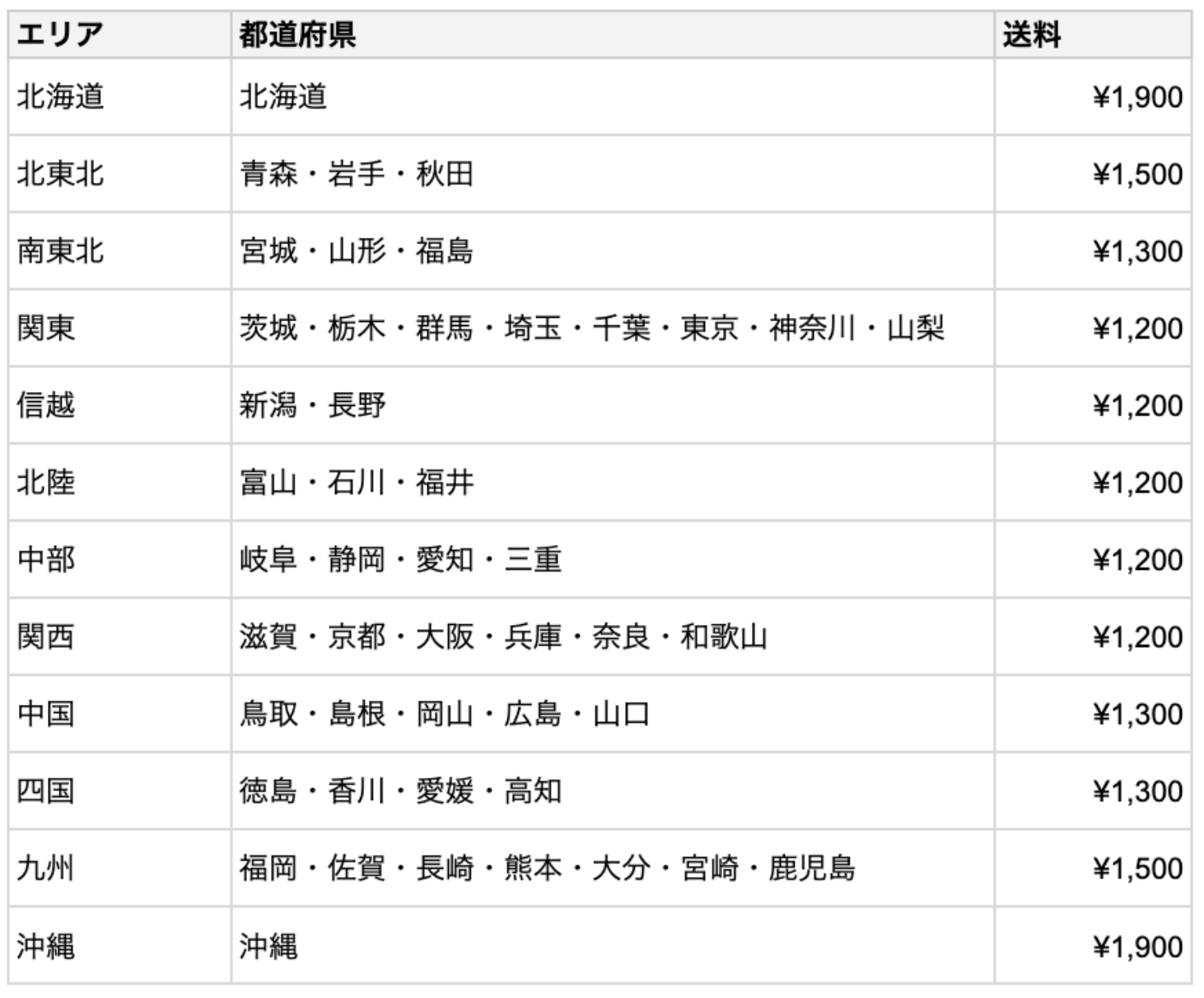 以下表を基に送料が決定されます。※商品によって異なる場合があります。